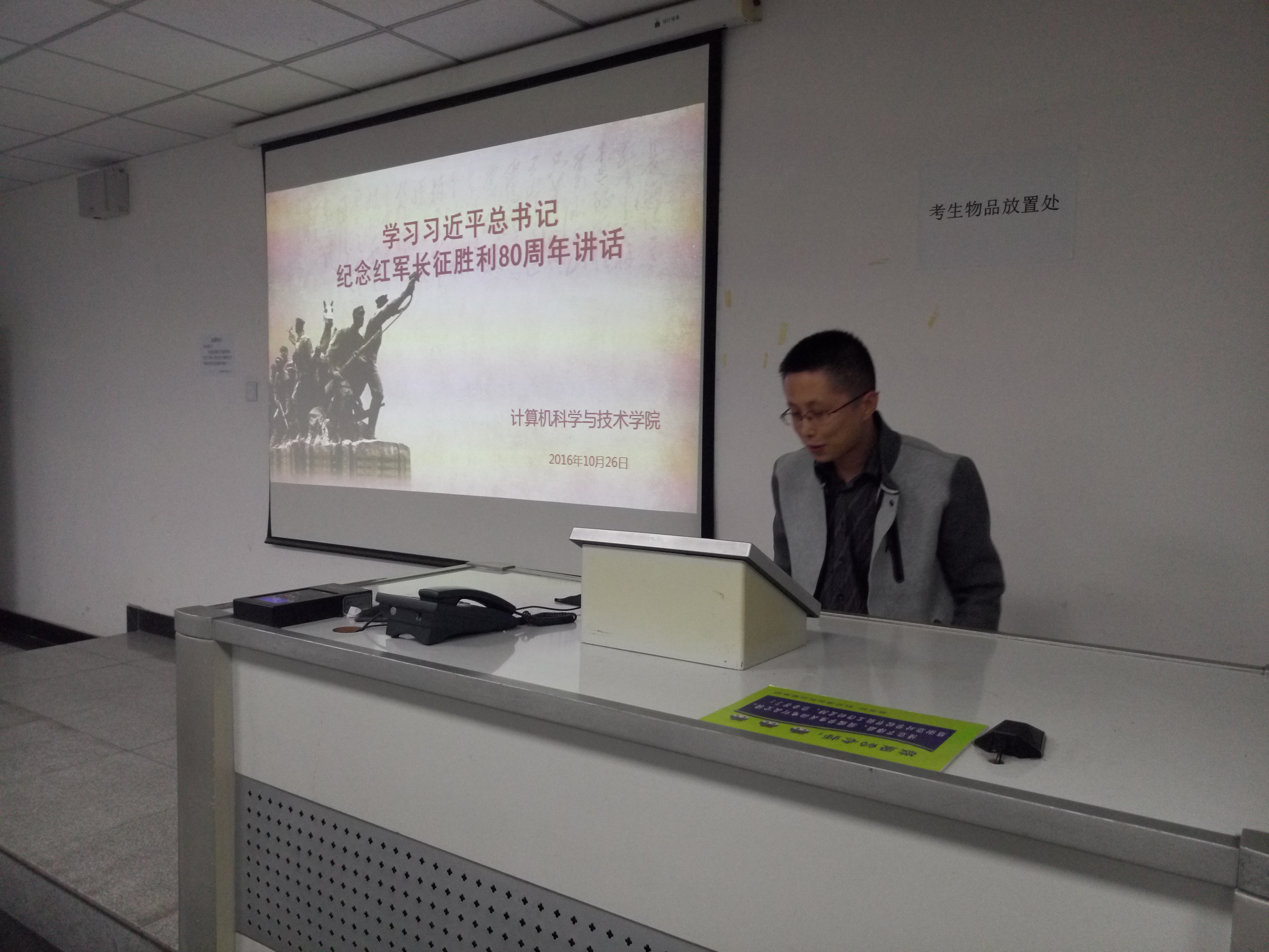 2016年10月25日晚,计科学院在博学楼209教室,举行了学习习近平总书记纪念红军长征胜利80周年讲话的活动,计科学院党政领导、全体辅导员老师和60余名学生党员参加了此次活动。