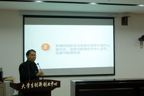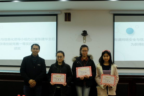 网络安全与信息化领导小组办公室张建华主任为获得技能竞赛一等奖的同学颁奖