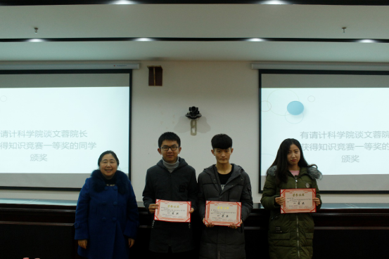 计科学院谈文蓉院长为获得知识竞赛一等奖的同学颁奖