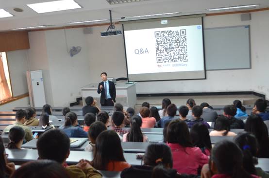惠普公司业务主管江帆首先介绍了一下惠普公司的基本情况,并就计算机专业的就业方向和就业需要掌握的一些技能进行介绍。随后江帆介绍了惠普公司在成都的一些上下游企业,并就这些企业所需要的人才进行了介绍,希望我院的毕业生能去惠普上下游企业实习实训、就业。惠普公司技术总监王一做了题为《大数据时代》的讲座。王一首先简要介绍了大数据的时代背景,然后介绍了大数据时代来临对计科专业提供的一些机遇和挑战,希望计科学院的学生做好准备迎接大数据时代的来临。